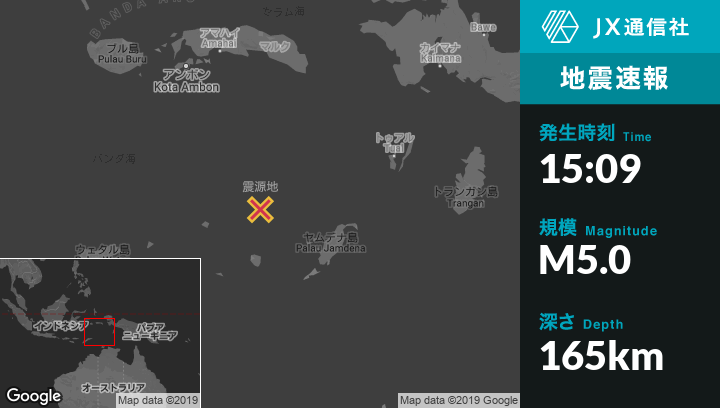 | 震源地 | インドネシアのSaumlakiから北西217kmの地点 |