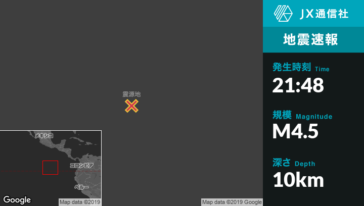 | 震源地 | エクアドルのPuerto Villamilから西北西832kmの地点 |