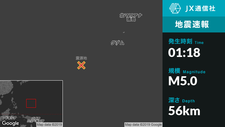 | 震源地 | グアムのMerizo Villageから西南西298kmの地点 |