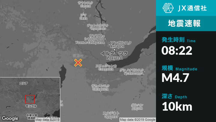 | 震源地 | ロシアのKyrenから西北西35kmの地点 |