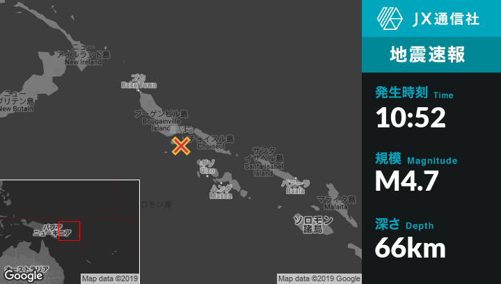 3月30日 10:52頃、ソロモン諸島のChirovangaから南西74kmの地点でM4.7の地震がありました。