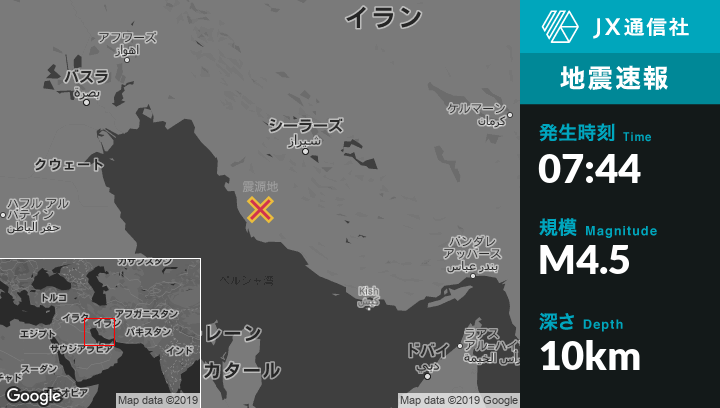 | 震源地 | イランのBorazjanから南南東85kmの地点 |