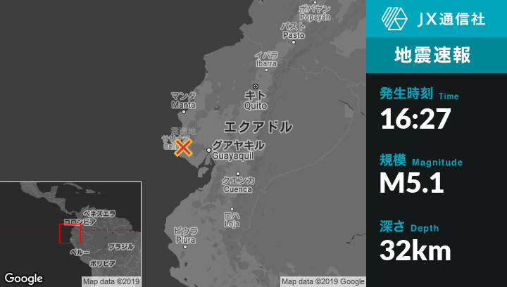 | 震源地 | エクアドルのSanta Elenaから北北東34kmの地点 |