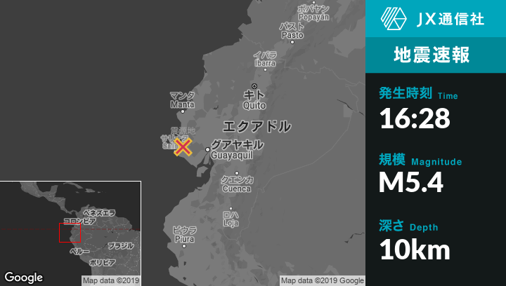 | 震源地 | エクアドルのSanta Elenaから北北東35kmの地点 |