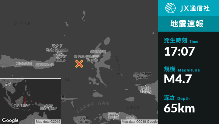| 震源地 | インドネシアのKota Ternateから西105kmの地点 |
