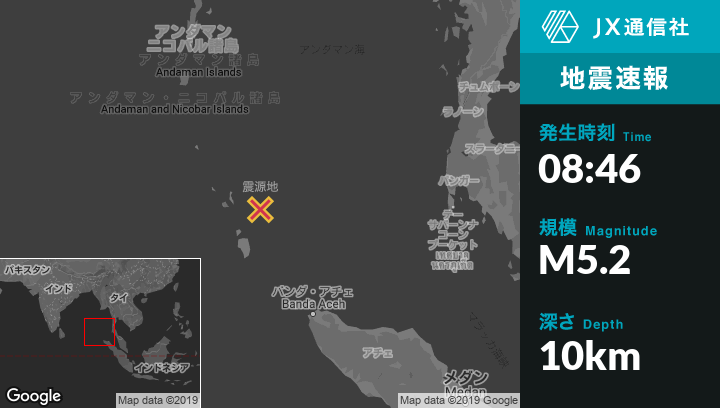 4月01日 08:46頃、インドのMoheanから東91kmの地点でM5.2の地震がありました。