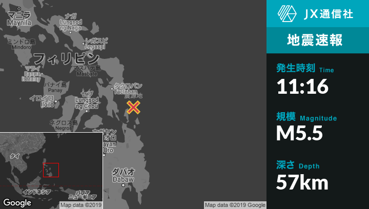 | 震源地 | フィリピンのSulanganから南38kmの地点 |