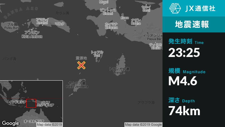 | 震源地 | インドネシアのTualから西南西128kmの地点 |