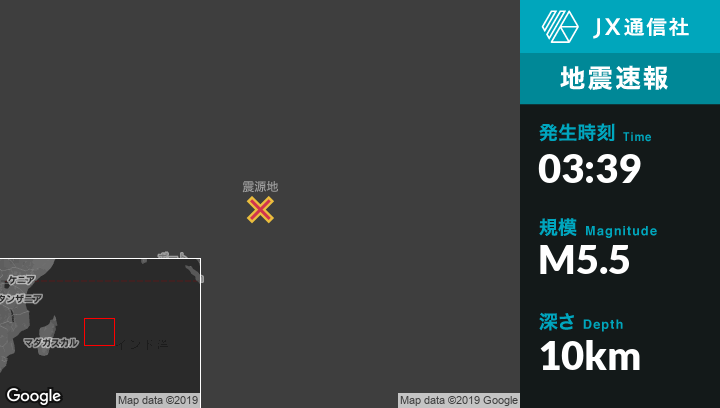 | 震源地 | モーリシャスのPort Mathurinから北東277kmの地点 |