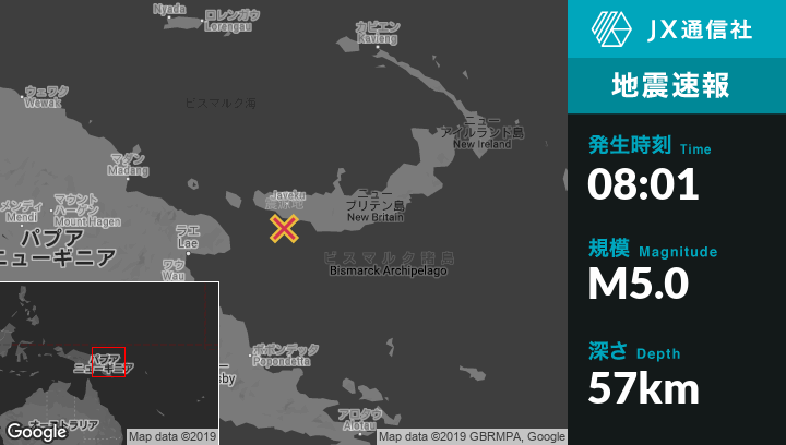 | 震源地 | パプアニューギニアのKandrianから西70kmの地点 |