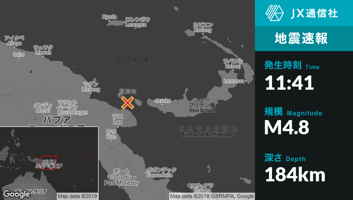 | 震源地 | パプアニューギニアのFinschhafenから北北西128kmの地点 |