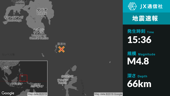 | 震源地 | フィリピンのSaranganiから東南東238kmの地点 |