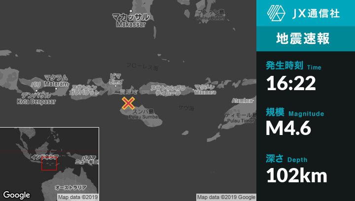4月04日 16:22頃、インドネシアのBondoboghilaから北35kmの地点でM4.6の地震がありました。