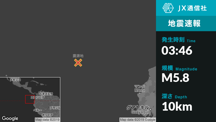 4月06日 03:46頃、コスタリカのIsla del Cocoから南南東498kmの地点でM5.8の地震がありました。