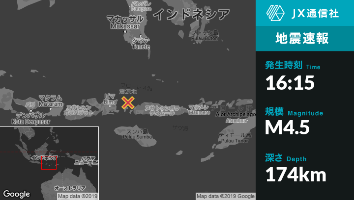 | 震源地 | インドネシアのKomodoから北43kmの地点 |