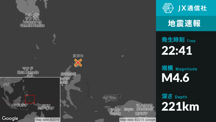 | 震源地 | インドネシアのTobeloから北北東103kmの地点 |