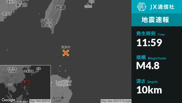 | 震源地 | フィリピンのBascoから北北西8kmの地点 |
