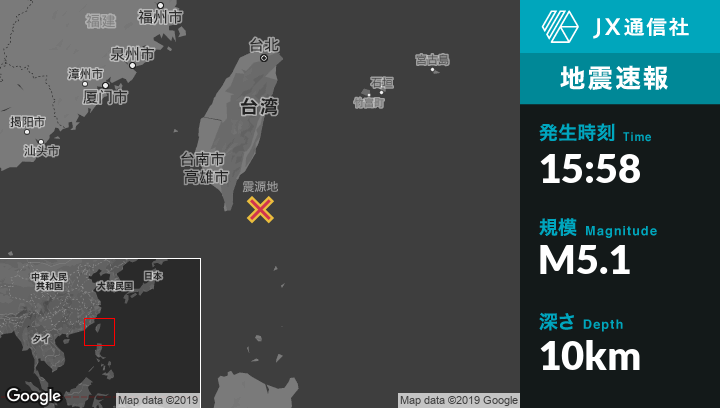 4月08日 15:58頃、台湾のHengchunから東76kmの地点でM5.1の地震がありました。