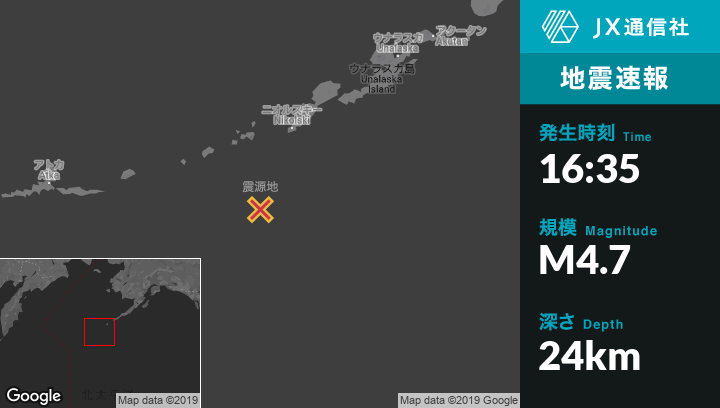 | 震源地 | アラスカのYunaska Islandから南東111kmの地点 |