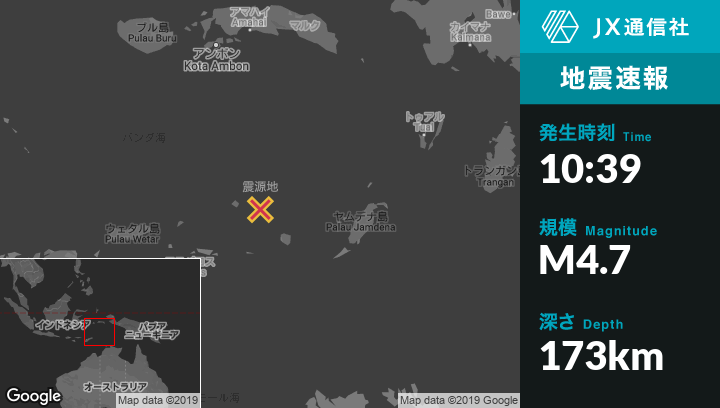 | 震源地 | インドネシアのSaumlakiから西北西254kmの地点 |