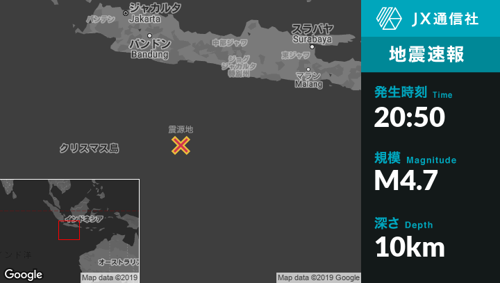 | 震源地 | インドネシアのCitotokから南268kmの地点 |