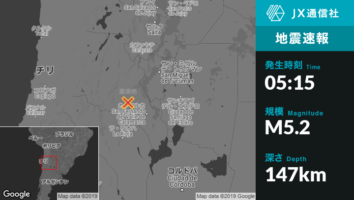 | 震源地 | アルゼンチンのAndalgalaから南西47kmの地点 |