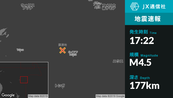 | 震源地 | トンガのNeiafuから北西124kmの地点 |