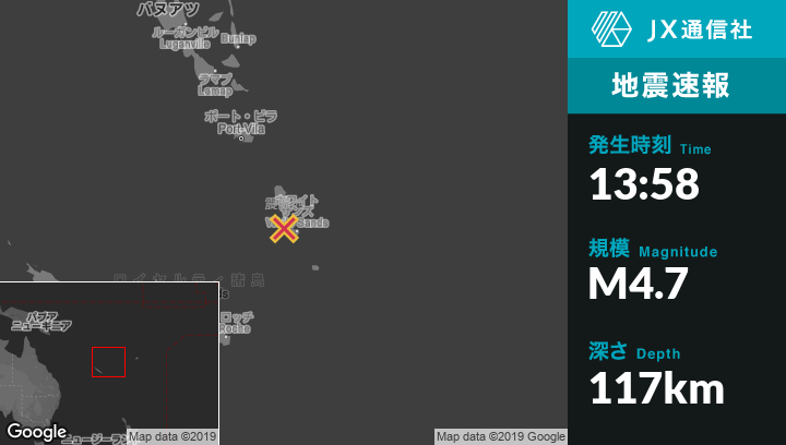 | 震源地 | バヌアツのIsangelから北北西25kmの地点 |
