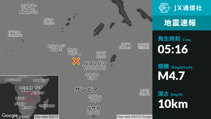 | 震源地 | コンゴ民主共和国のLikasiから南東43kmの地点 |