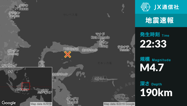 | 震源地 | インドネシアのTilamutaから西南西33kmの地点 |