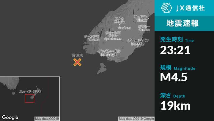 | 震源地 | ニュージーランドのRivertonから西155kmの地点 |