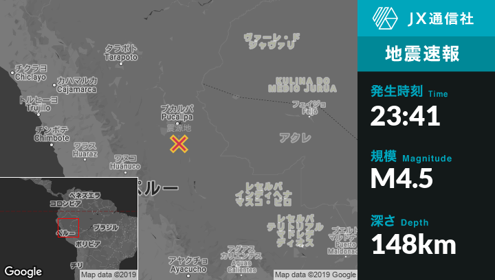 | 震源地 | ペルーのCampoverdeから南南東56kmの地点 |