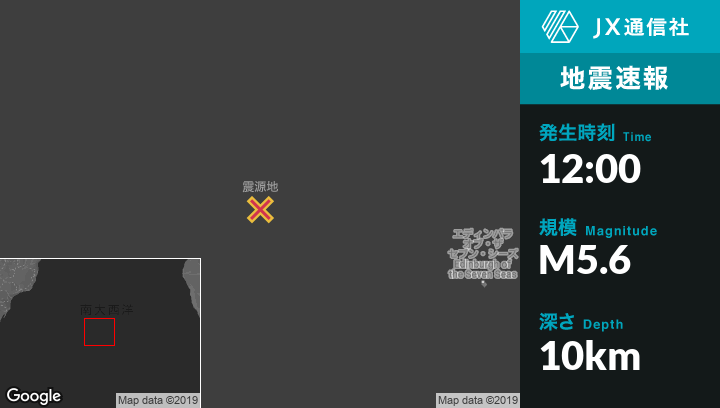 | 震源地 | セントヘレナのEdinburgh of the Seven Seasから西北西465kmの地点 |