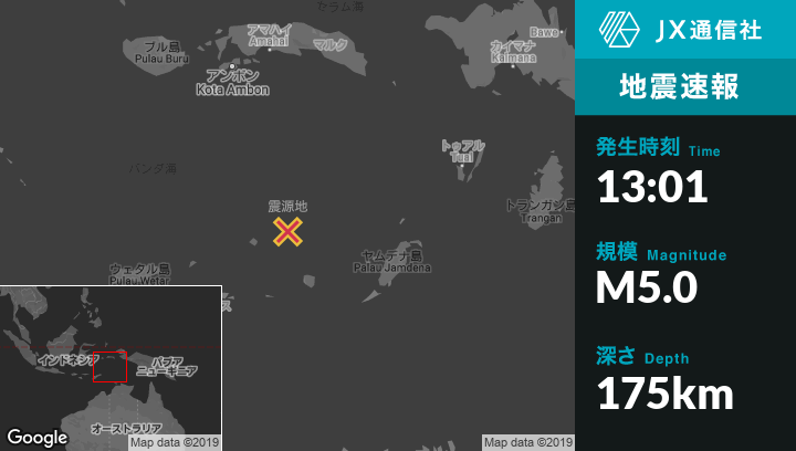 | 震源地 | インドネシアのSaumlakiから西北西256kmの地点 |