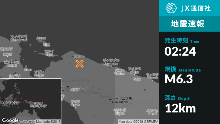6月20日 02:24頃、インドネシアのAbepuraから西245kmの地点でM6.3の地震がありました。