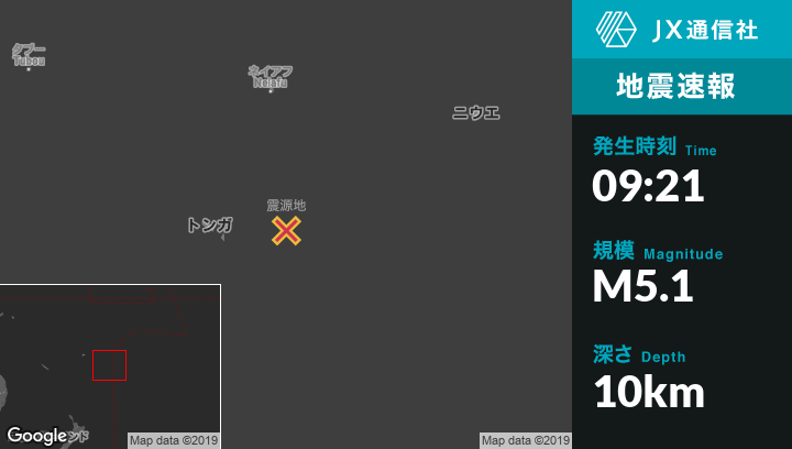 | 震源地 | トンガの`Ohonuaから東134kmの地点 |