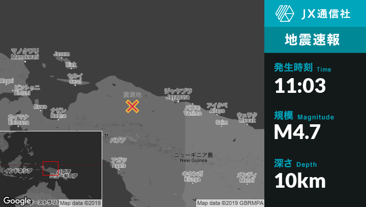 | 震源地 | インドネシアのAbepuraから西211kmの地点 |