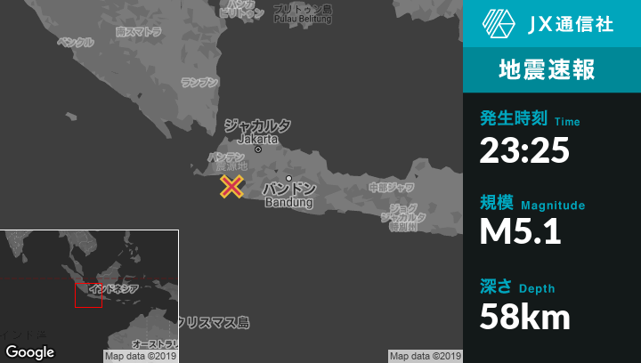 | 震源地 | インドネシアのSindanglautから南西8kmの地点 |