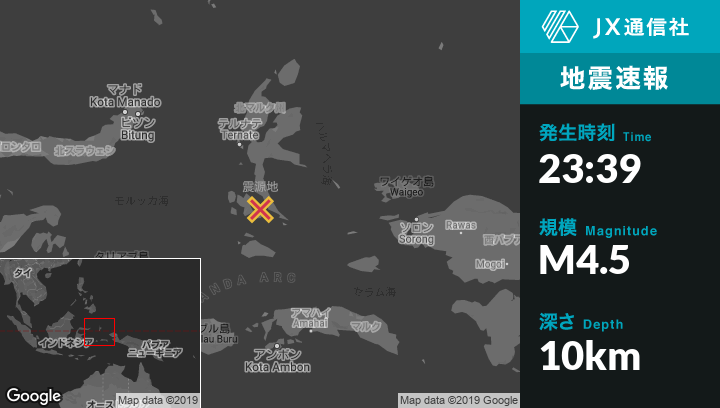 | 震源地 | インドネシアのLaiwuiから北91kmの地点 |