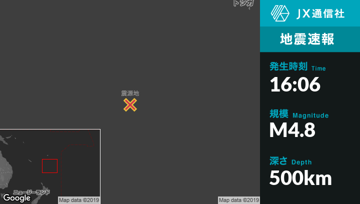 | 震源地 | ニュージーランドのRaoul Islandから北北西507kmの地点 |