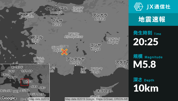 | 震源地 | トルコのBaklanから東南東8kmの地点 |