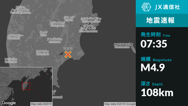 | 震源地 | ロシアのEssoから南東177kmの地点 |