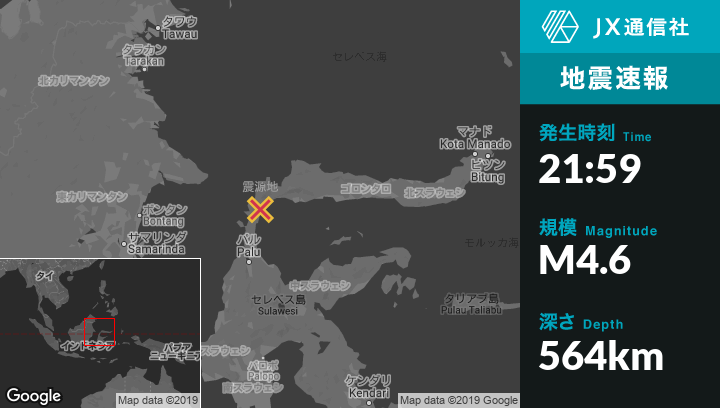 | 震源地 | インドネシアのTinaboganから南西63kmの地点 |