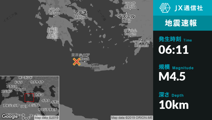 | 震源地 | ギリシャのPlatanosから北西23kmの地点 |