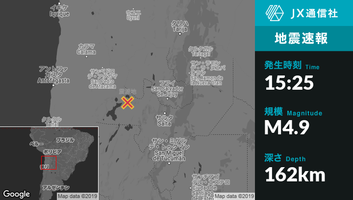 | 震源地 | アルゼンチンのSan Antonio de los Cobresから西78kmの地点 |