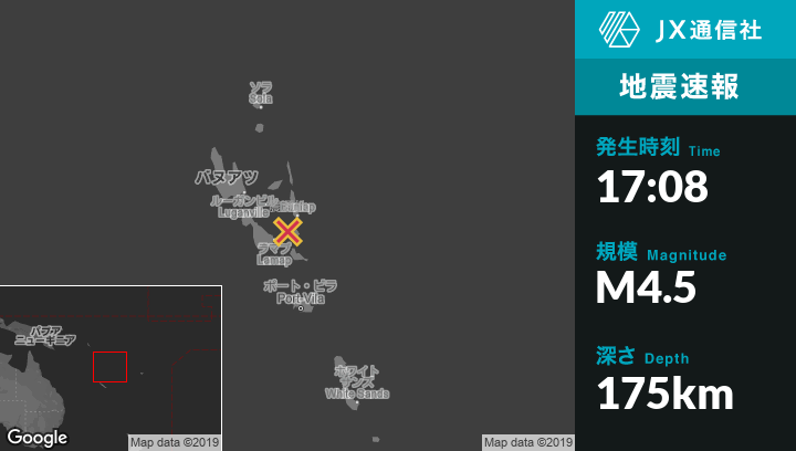 | 震源地 | バヌアツのLakatoroから東69kmの地点 |