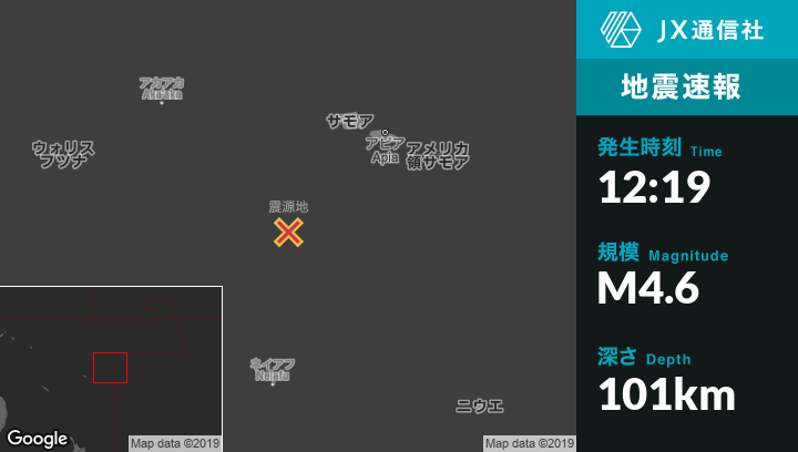 8月16日 12:19頃、トンガのHihifoから北北東35kmの地点でM4.6の地震がありました。