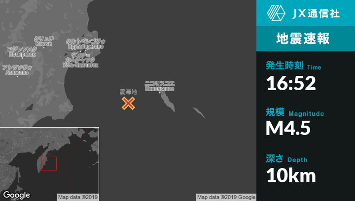 | 震源地 | ロシアのNikol'skoyeから西南西92kmの地点 |
