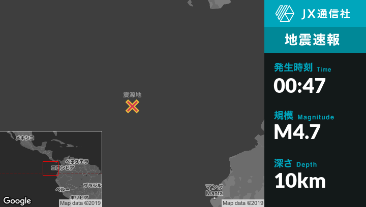 | 震源地 | コスタリカのIsla del Cocoから南東408kmの地点 |