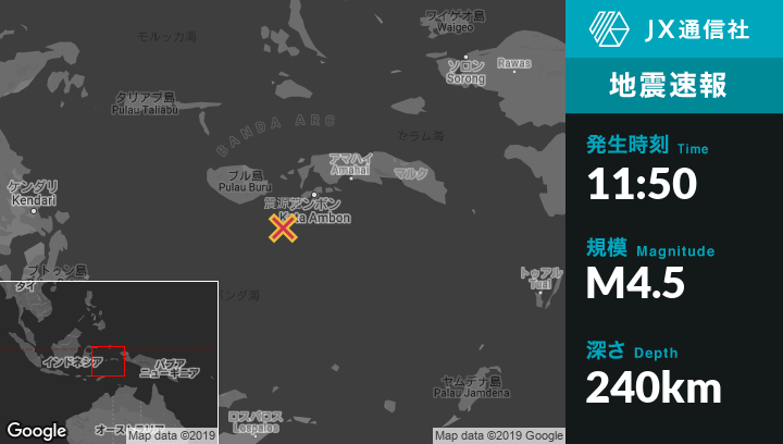 | 震源地 | インドネシアのAmahusuから南西85kmの地点 |